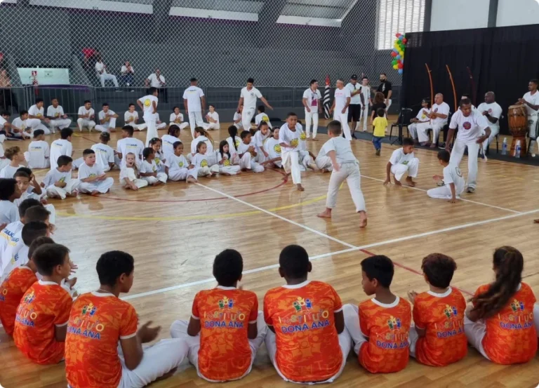 Temos o PROJETO APOIO, para crianças a partir de 4 anos. Não ensinamos capoeira, artes, canto e civismo. UTILIZAMOS a capoeira, a artes, o canto e o civismo para construir um ser humano melhor.